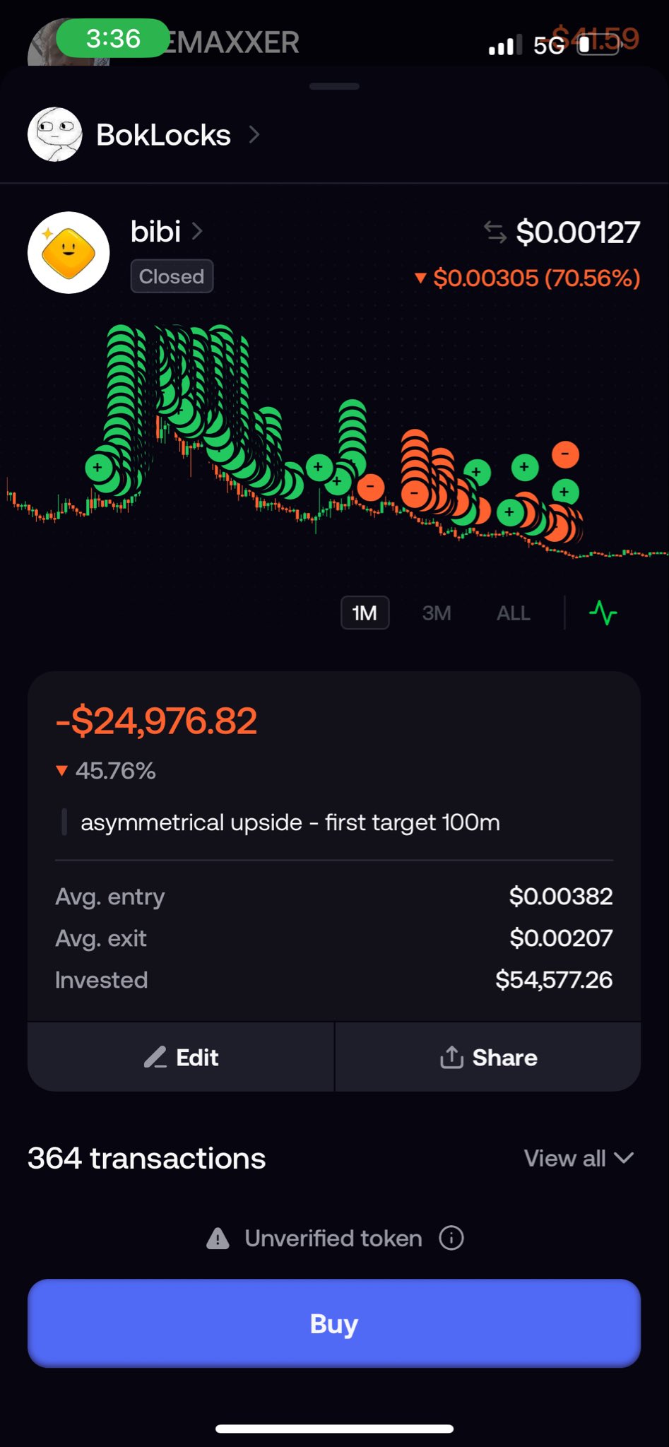So I lost a ton on that $BiBi trade (-25k) and haven’t talked about it yet…