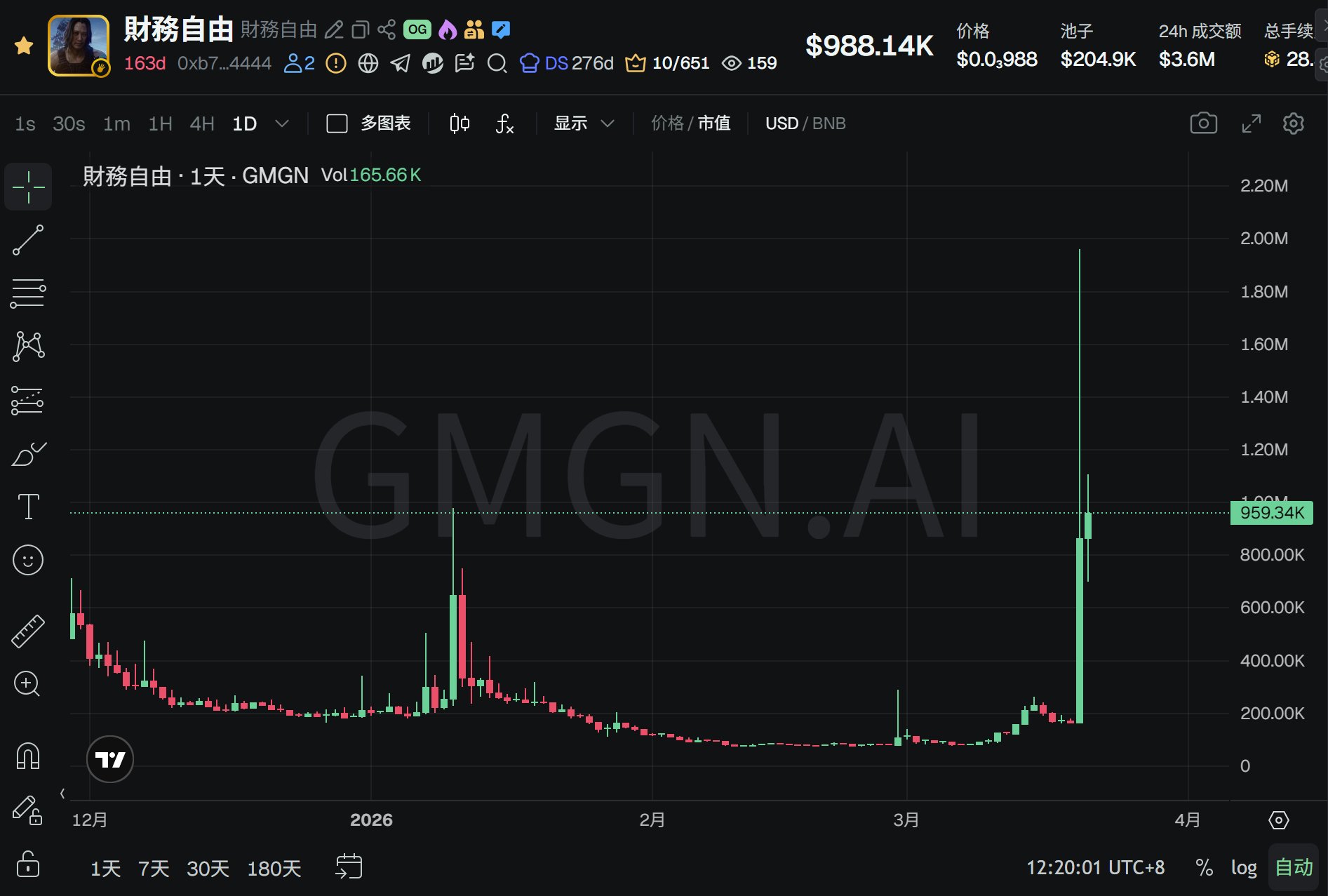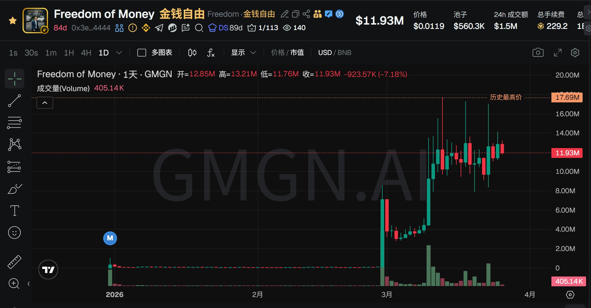 The English‑named project $FreedomofMoney only saw a modest rise, since it has already entered Alpha and surpassed a ten‑million market cap, making liquidity hard to boost.