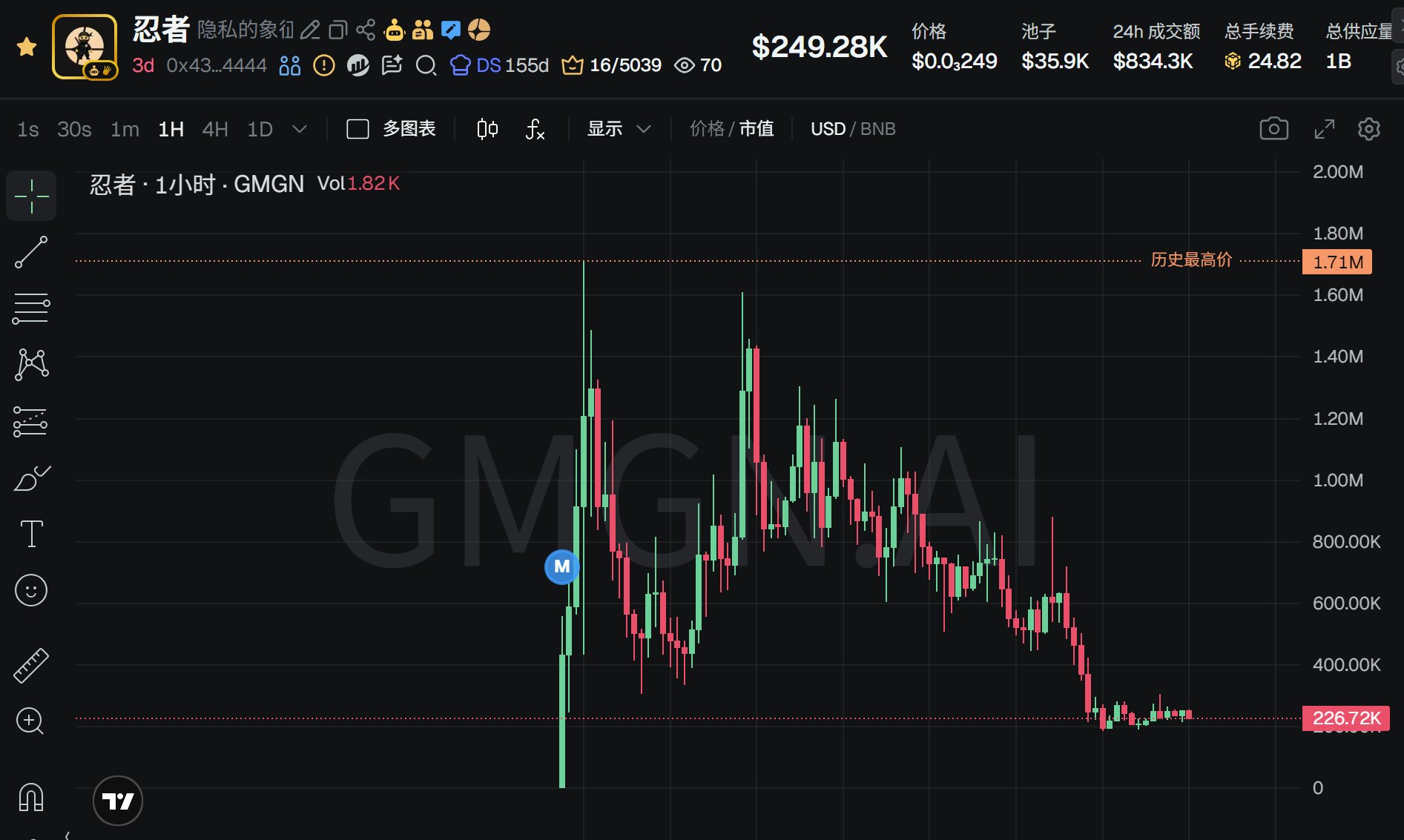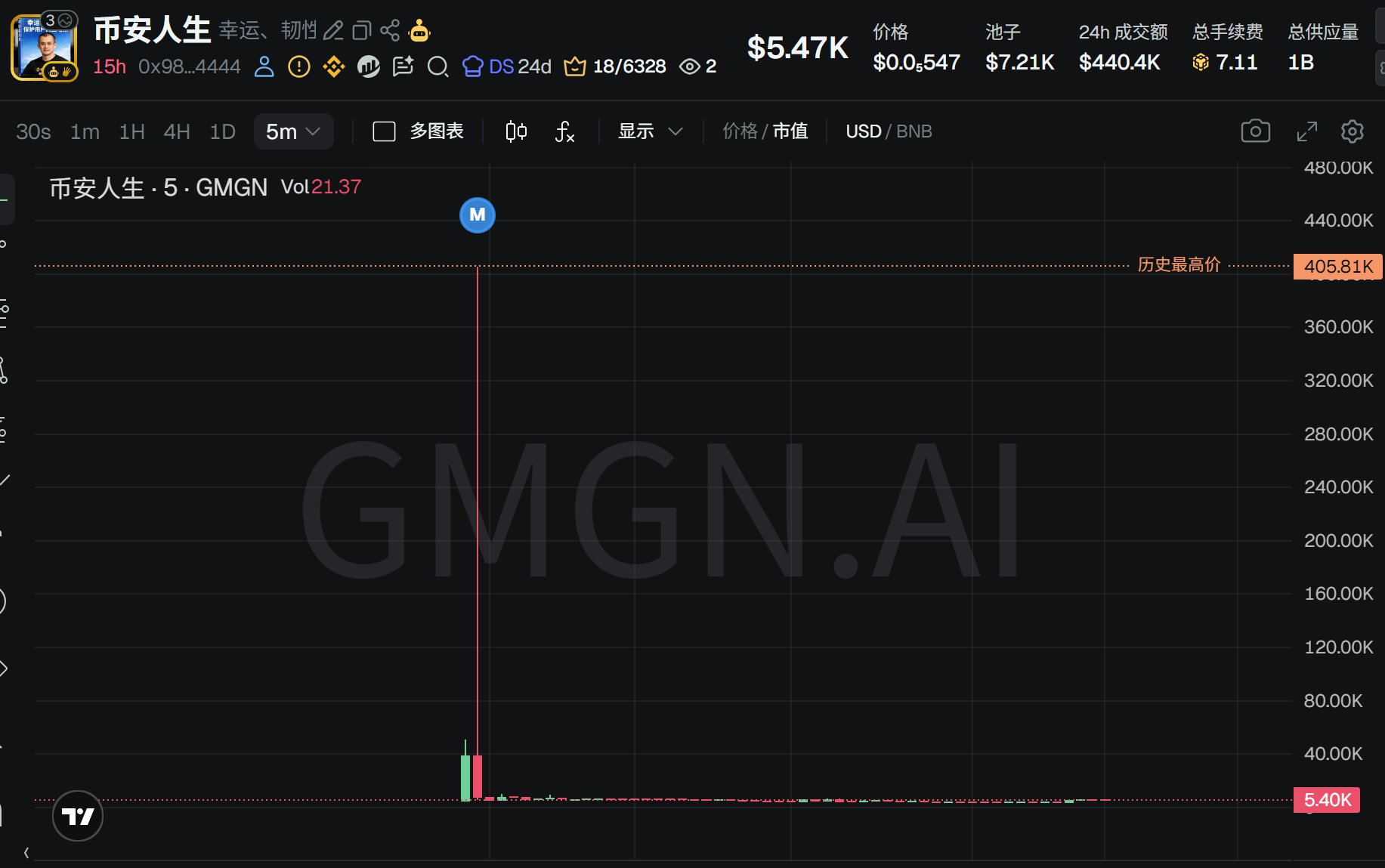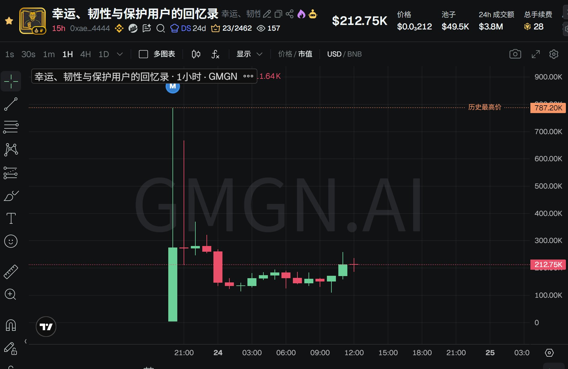 The Chinese‑named #币安人生, because an older project with the same name exists, the new project's pump to 400,000 ended quickly, a rapid launch and iteration. The only tradable thing is the subtitle #幸运韧性与保护用户的回忆录, which unexpectedly also pumped quickly to 780,000 before going GG.