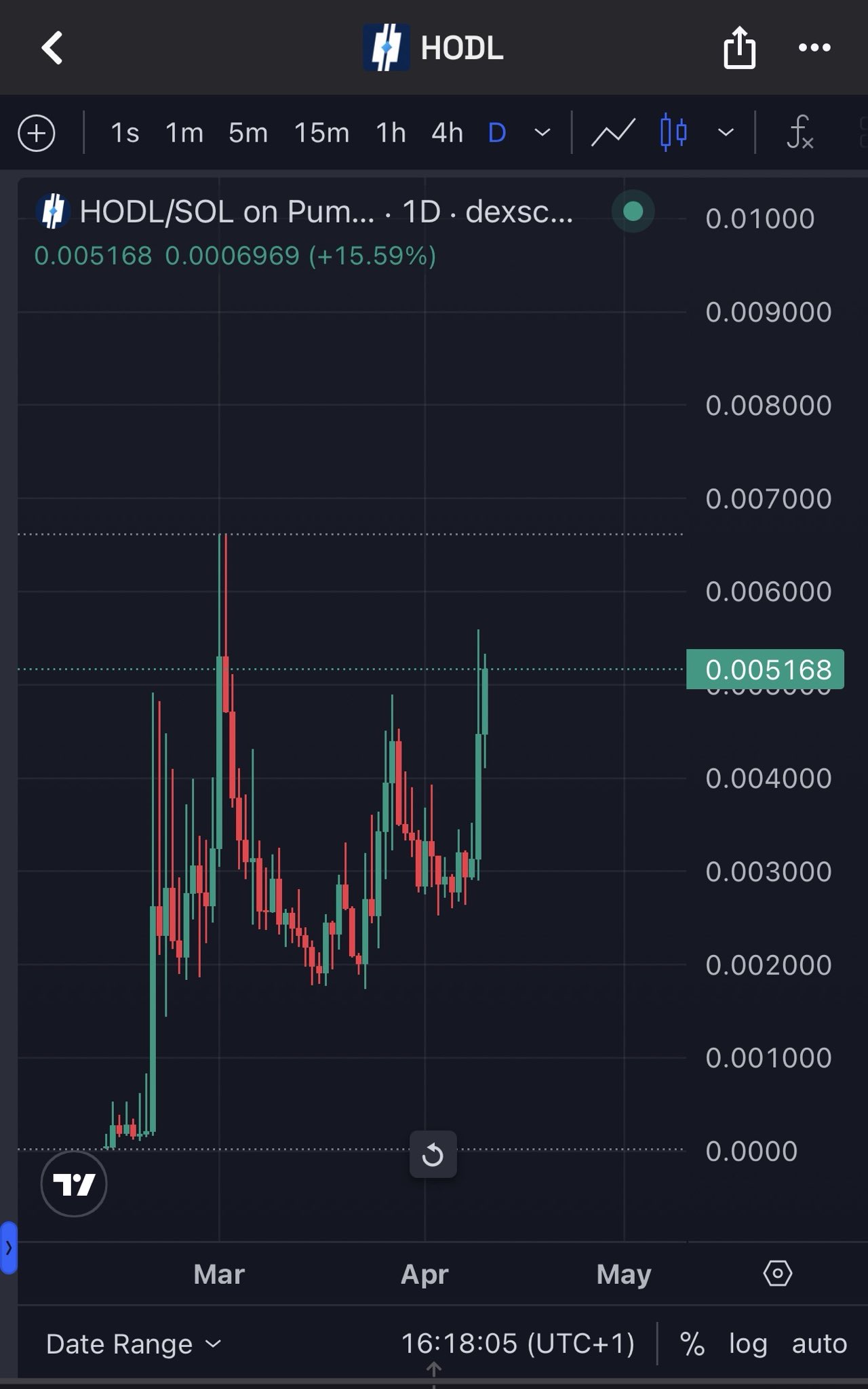 The HODL coin is generating FOMO sentiment, indicating it is still an early entry opportunity, and the chart shows a daily increase of 15.59%.
