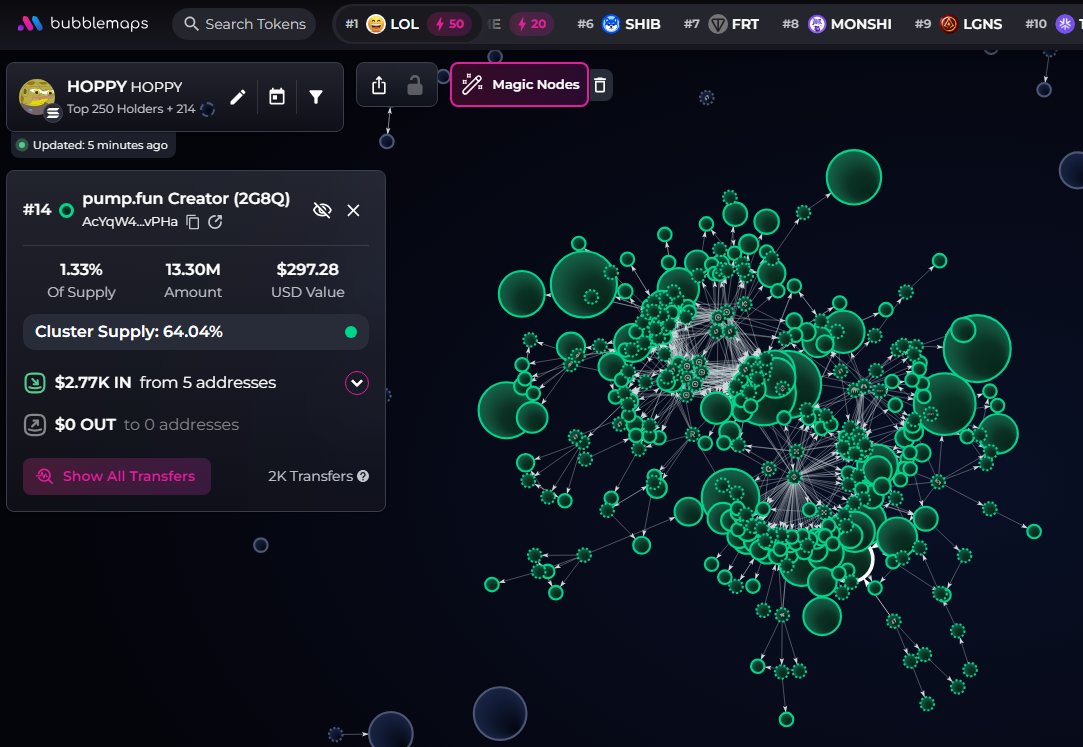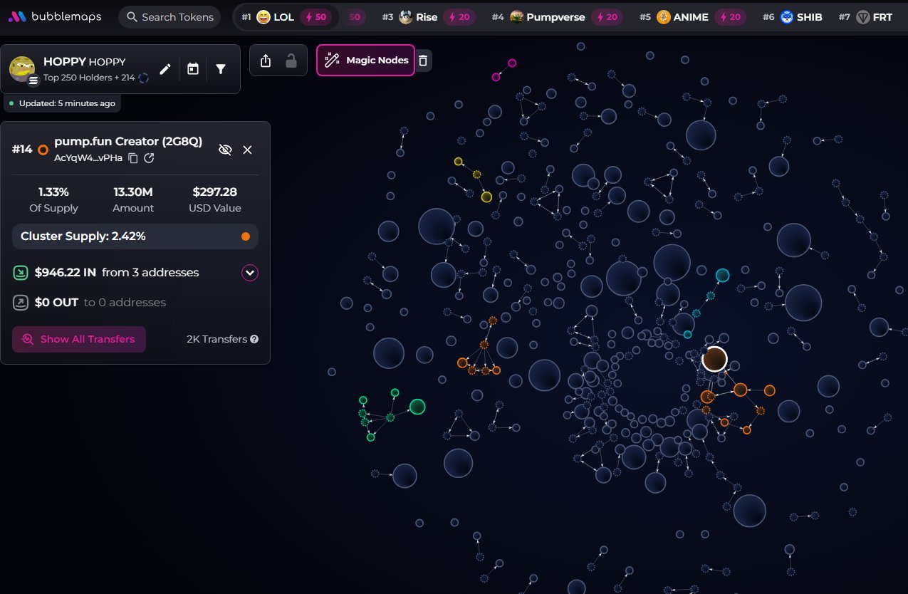 HOPPY token has a high concentration of holdings, large CEX ownership, and no insiders.