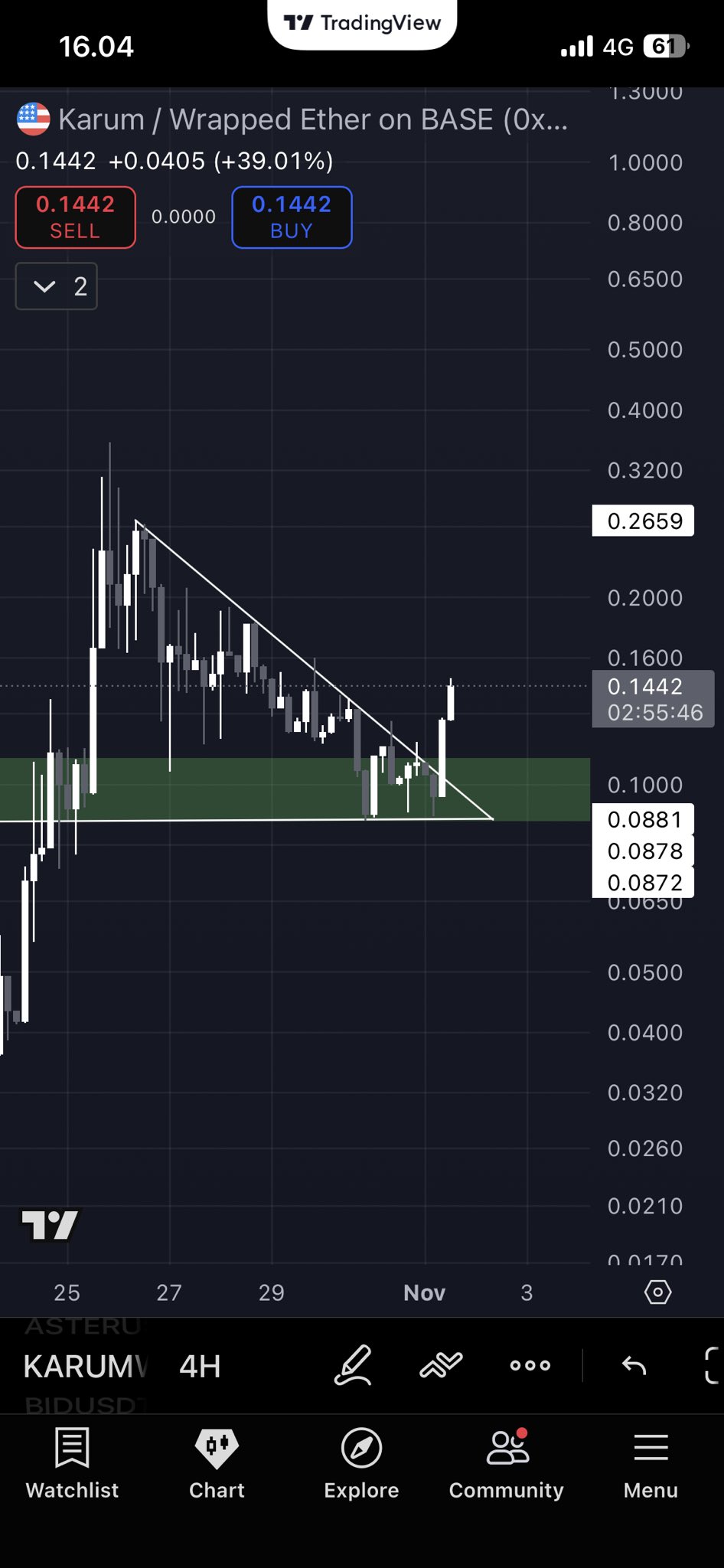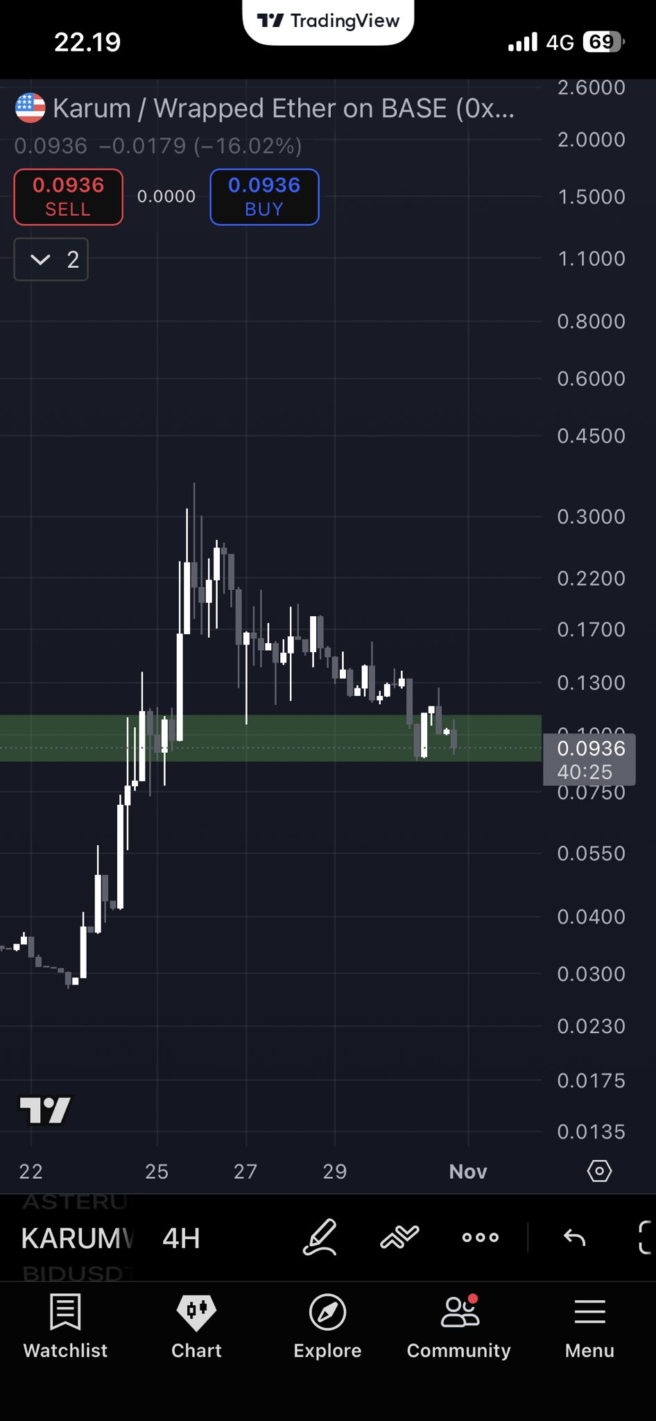 TalonXBT is bullish on $KARUM, believing it will continue to rise if it holds its current support after a pullback, and has re-purchased after taking profit at $0.3.