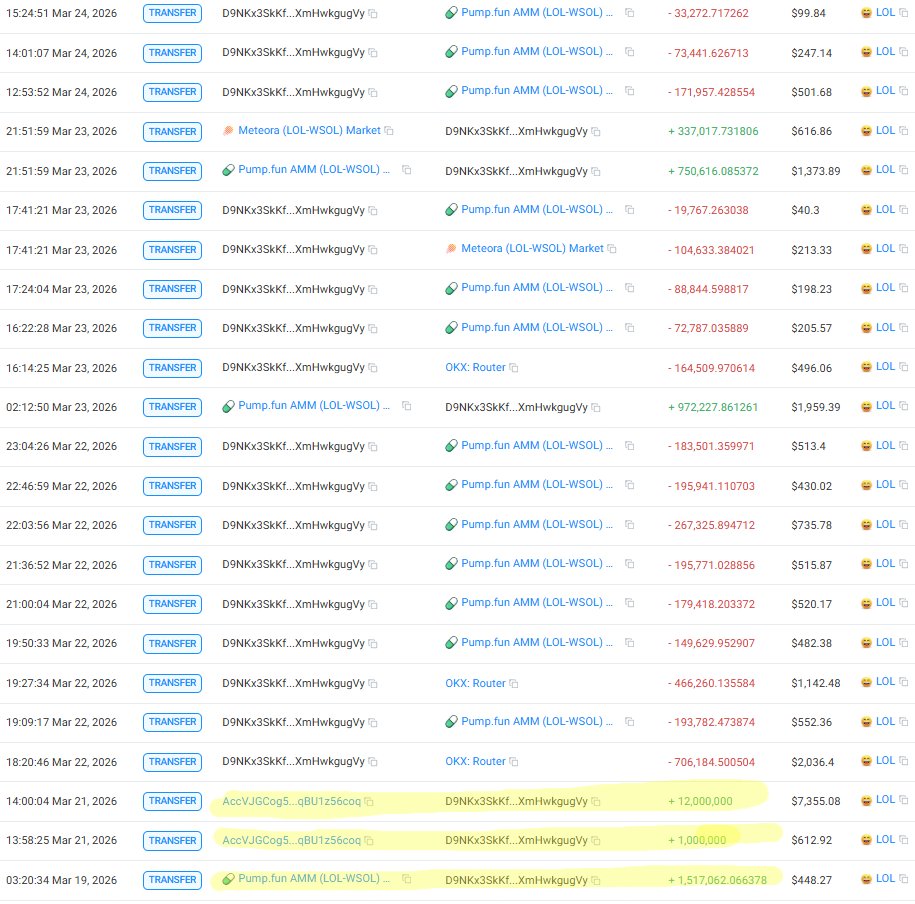 🔹 Received 1M + 12M $LOL from 2 other wallets