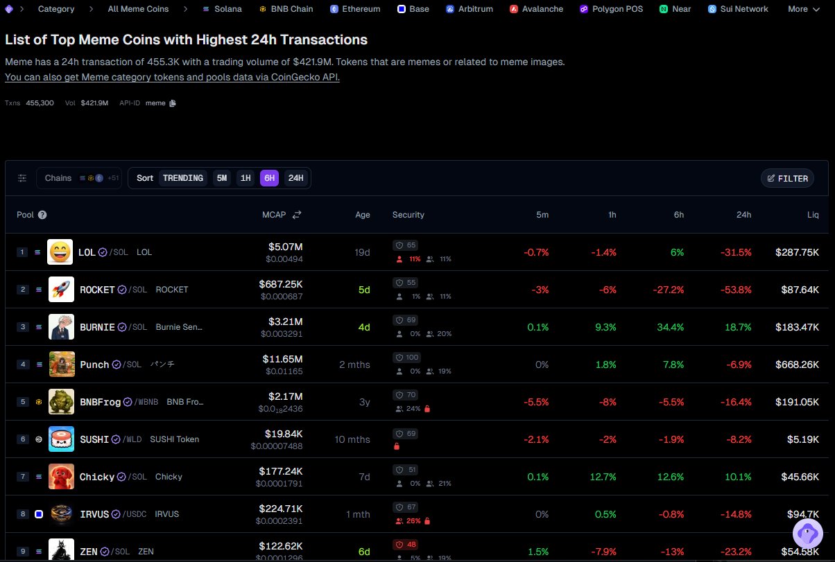 The author shares practical tools for memecoin trading and monitoring, and showcases 24-hour trading data of popular memecoins.