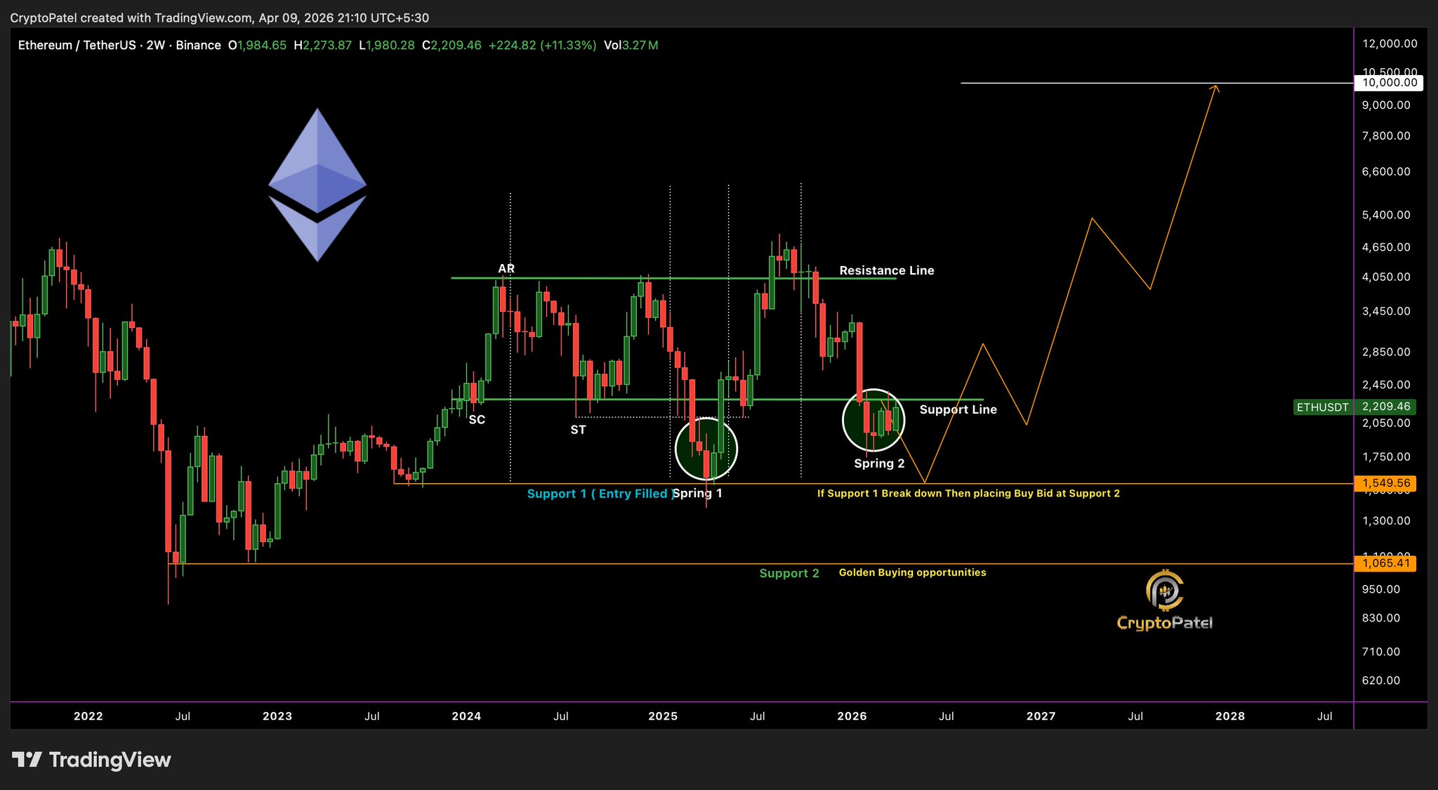 The author believes ETH has bottomed out and will trigger a strong rally, targeting $8,000-$10,000.
