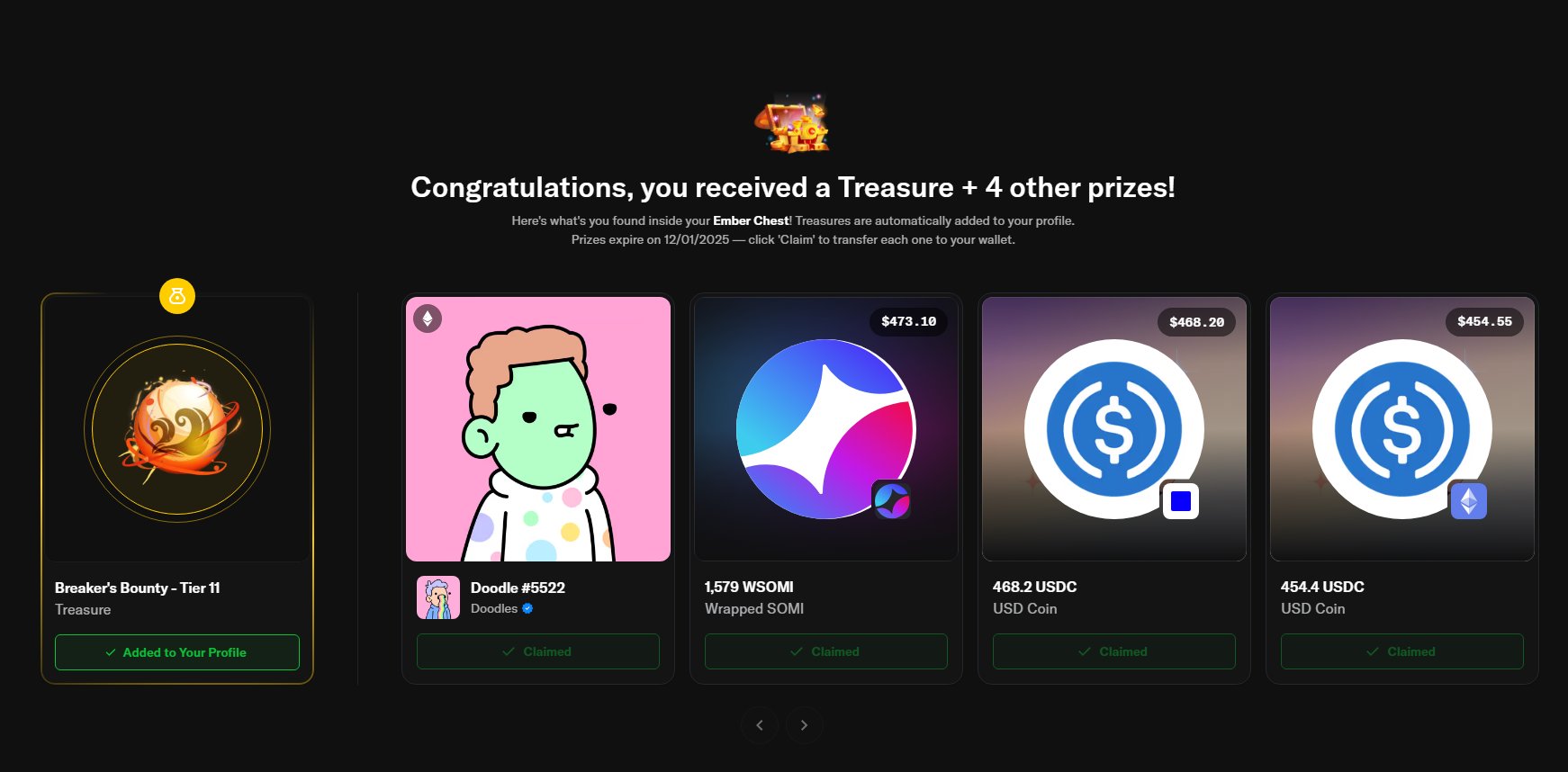 This season I was one tier lower than last season, but the rewards turned out to be better, mainly because the #Somnia ecosystem NFT suddenly got a boost, reshuffling the leaderboard. I picked up two floor NFTs on @opensea midway, still got the bonus, not late at all. You can top up tickets anytime before Season 5 ends; buying one gets the boost.