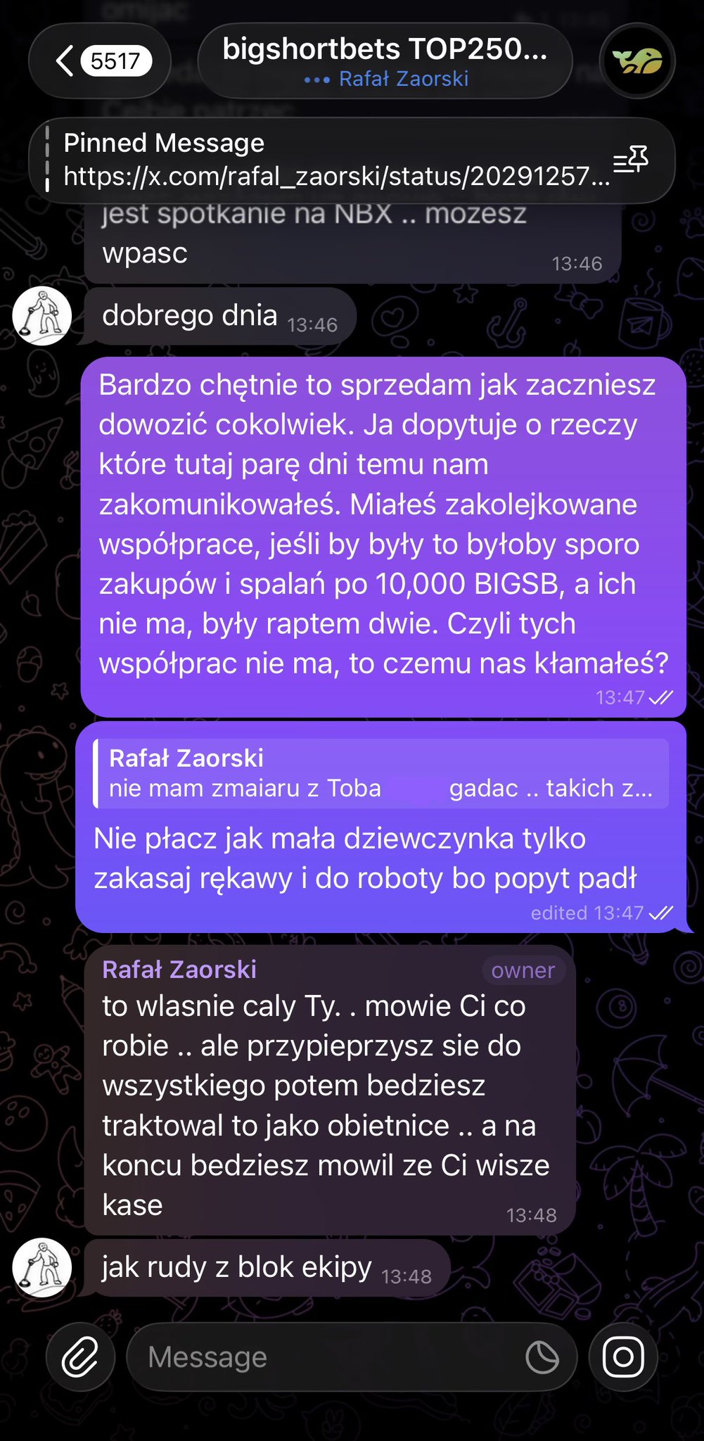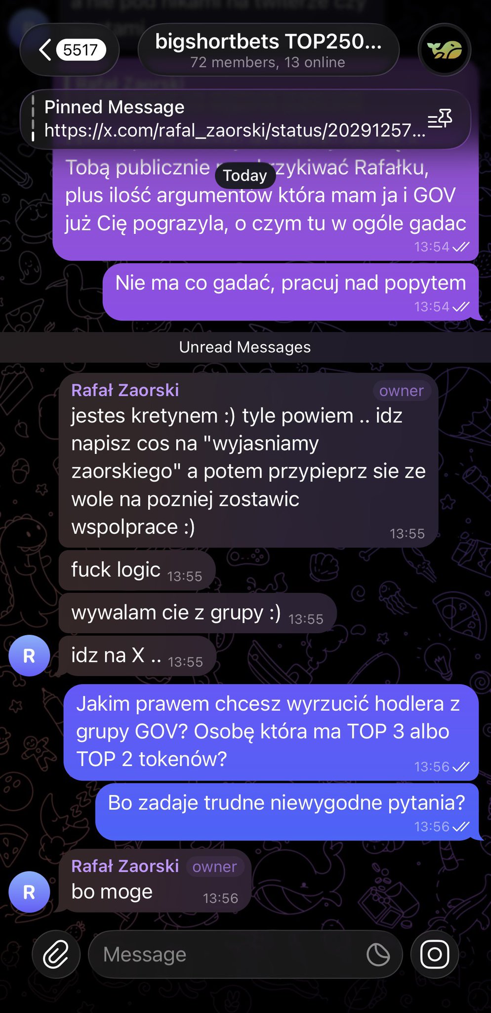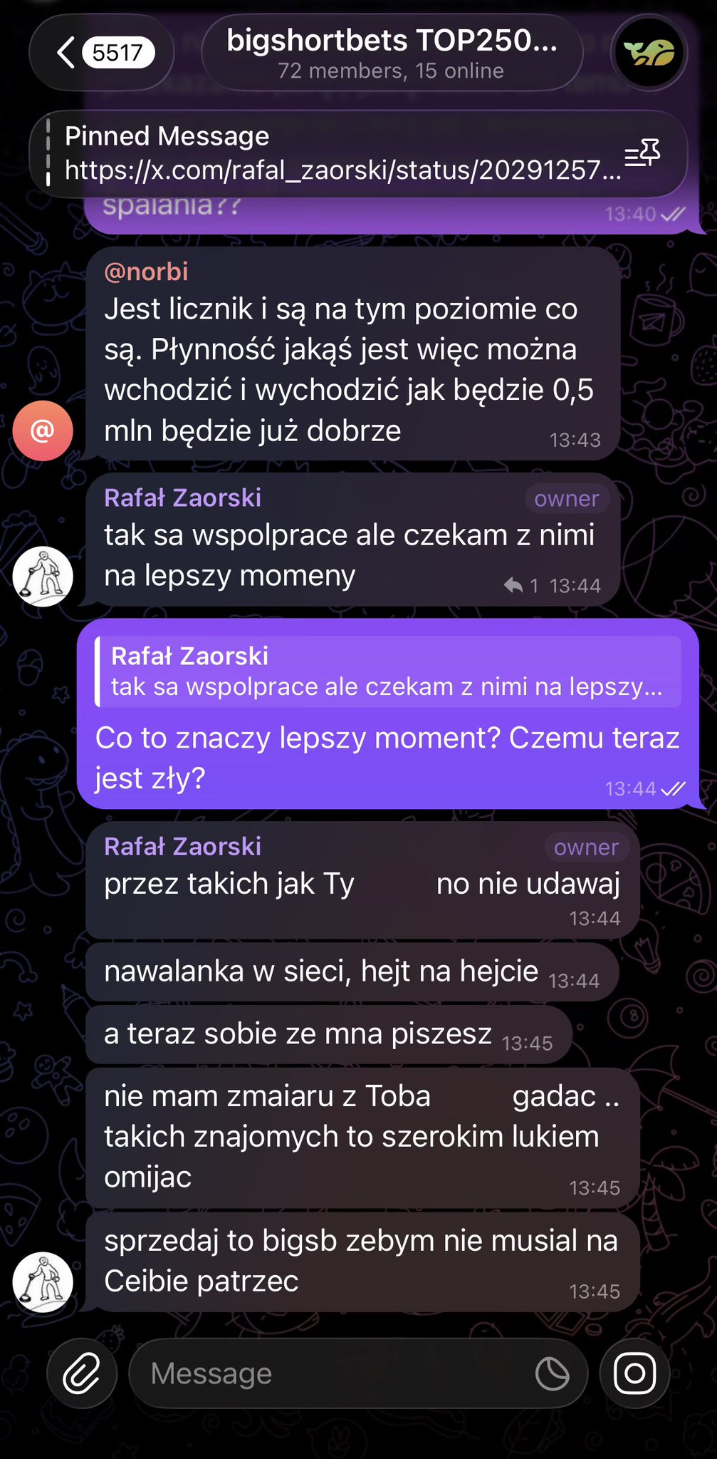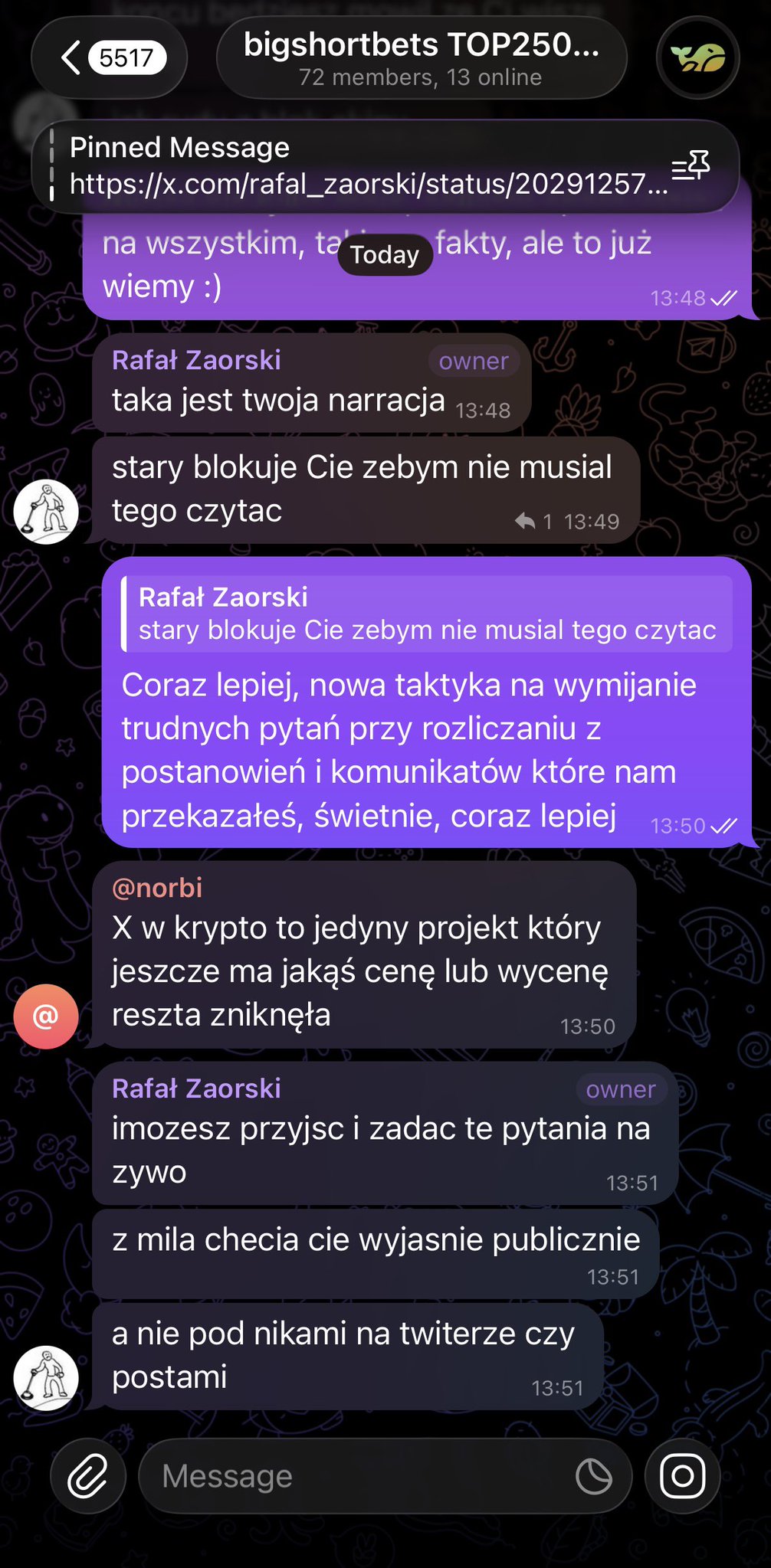 Rafał Zaorski blocked me and kicked me out of the group for the biggest shareholders in the BigShortBets project after I asked uncomfortable questions.