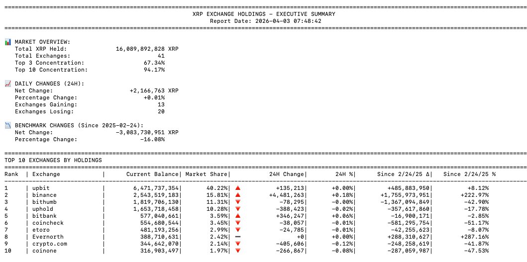 Total XRP Held: 16,089,892,828 XRP