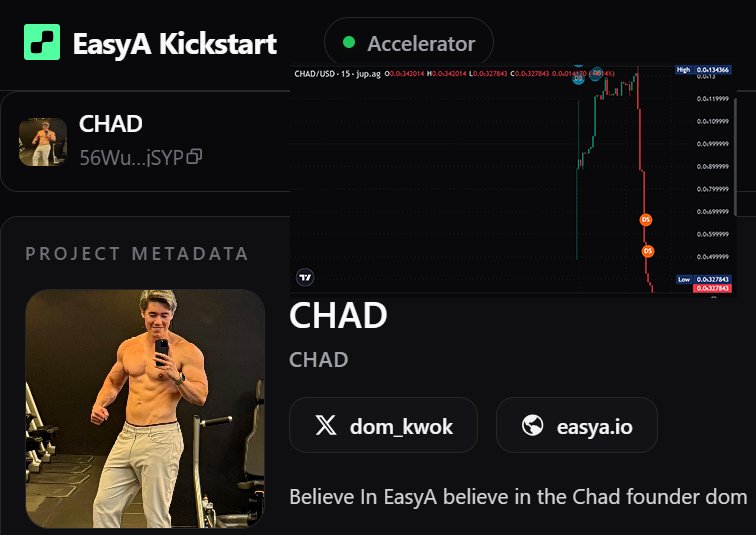 The CHAD token launched by EasyA Kickstart on Solana experienced extreme price volatility and then sharply declined.