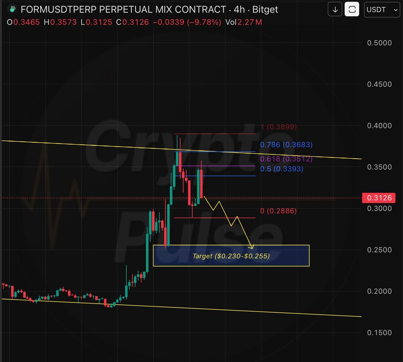 On H4, $FORM just got rejected from its daily resistance. After a retrace forming a higher low, price rejected right at the 0.618 Fibonacci golden zone, followed by a solid red candle.