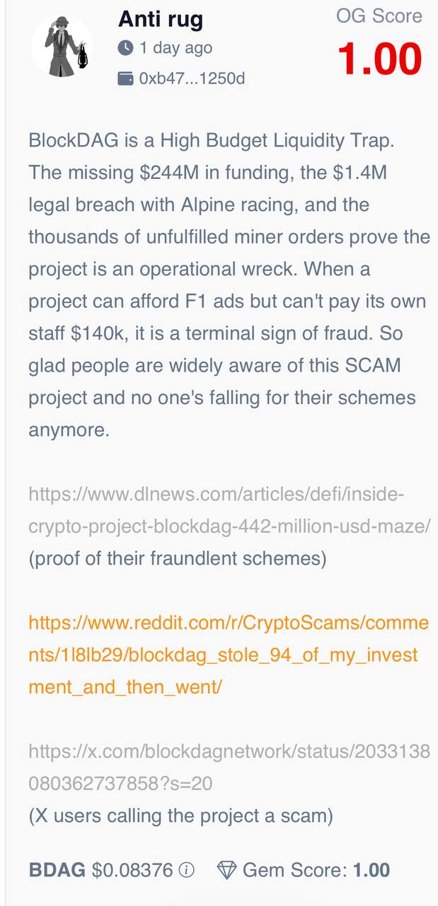 Our OG reviewers raise serious red flags around BlockDAG $BDAG, pointing to missing funds, legal disputes and thousands of unfulfilled miner orders.