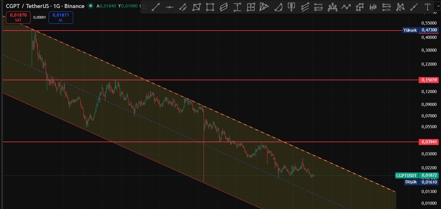 Today's price of ChainGPT Is $ 0.018 (CGPT/USD). With A Market Cap Of $ 16.11M USD. 24-Hour Trading Volume Of $ 324.86K USD, A 24-Hour Price Change Of -1.22%, And A Circulating Supply Of 876.52M CGPT.