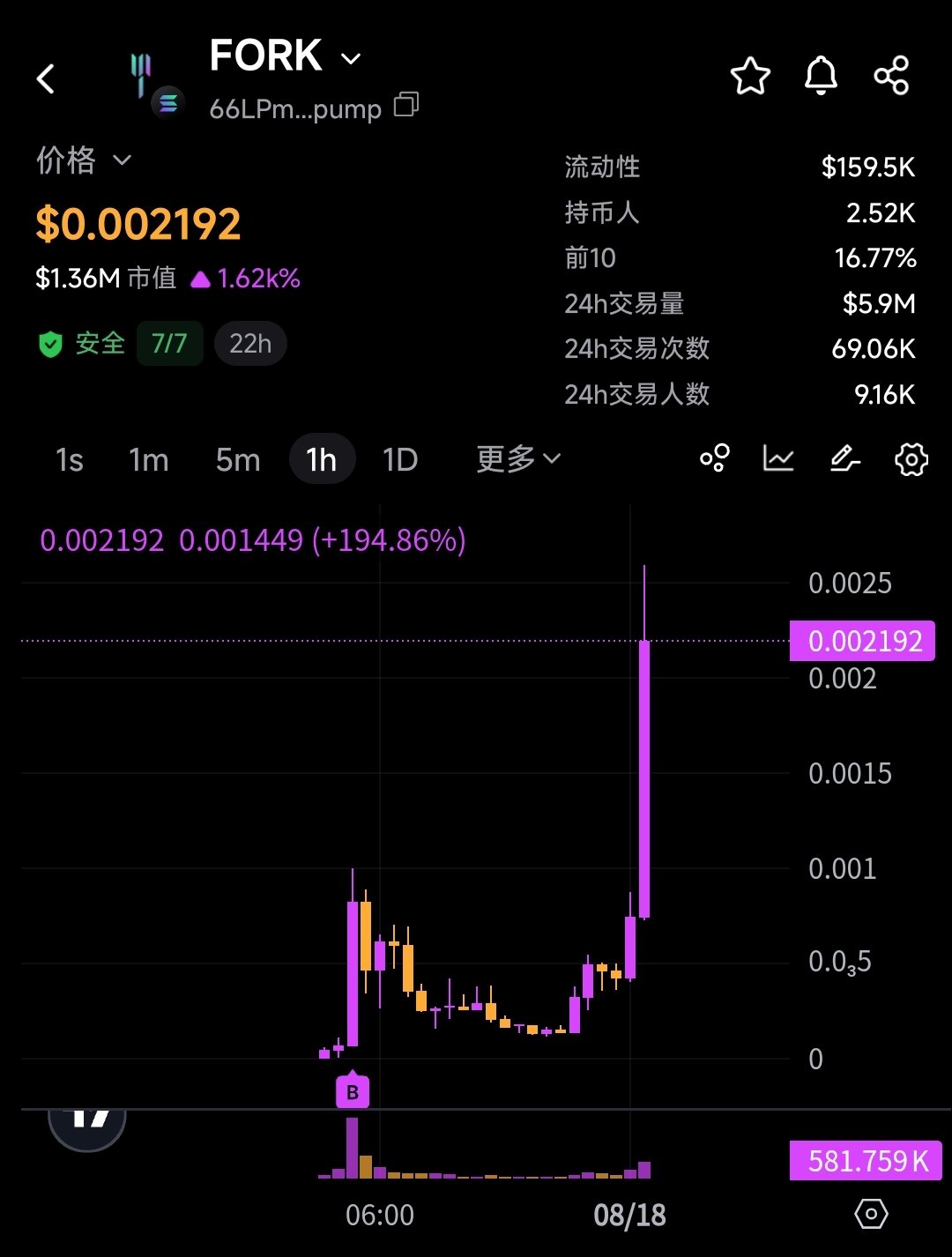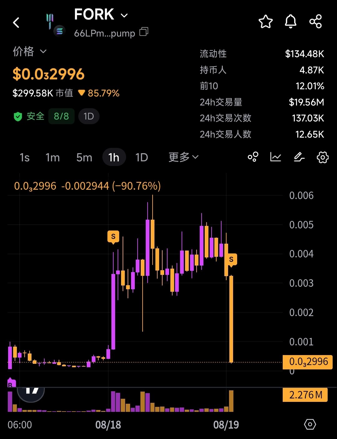 $FORK experienced extreme volatility, first plummeting near zero then significantly rebounding, warning of extremely high risk.