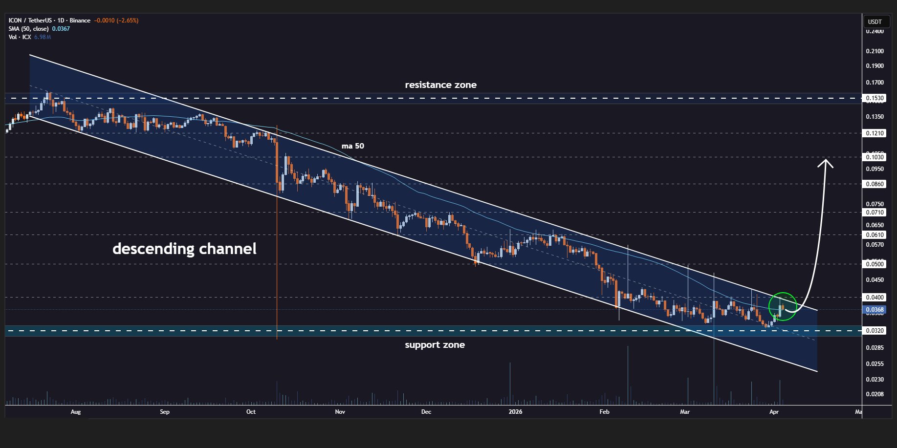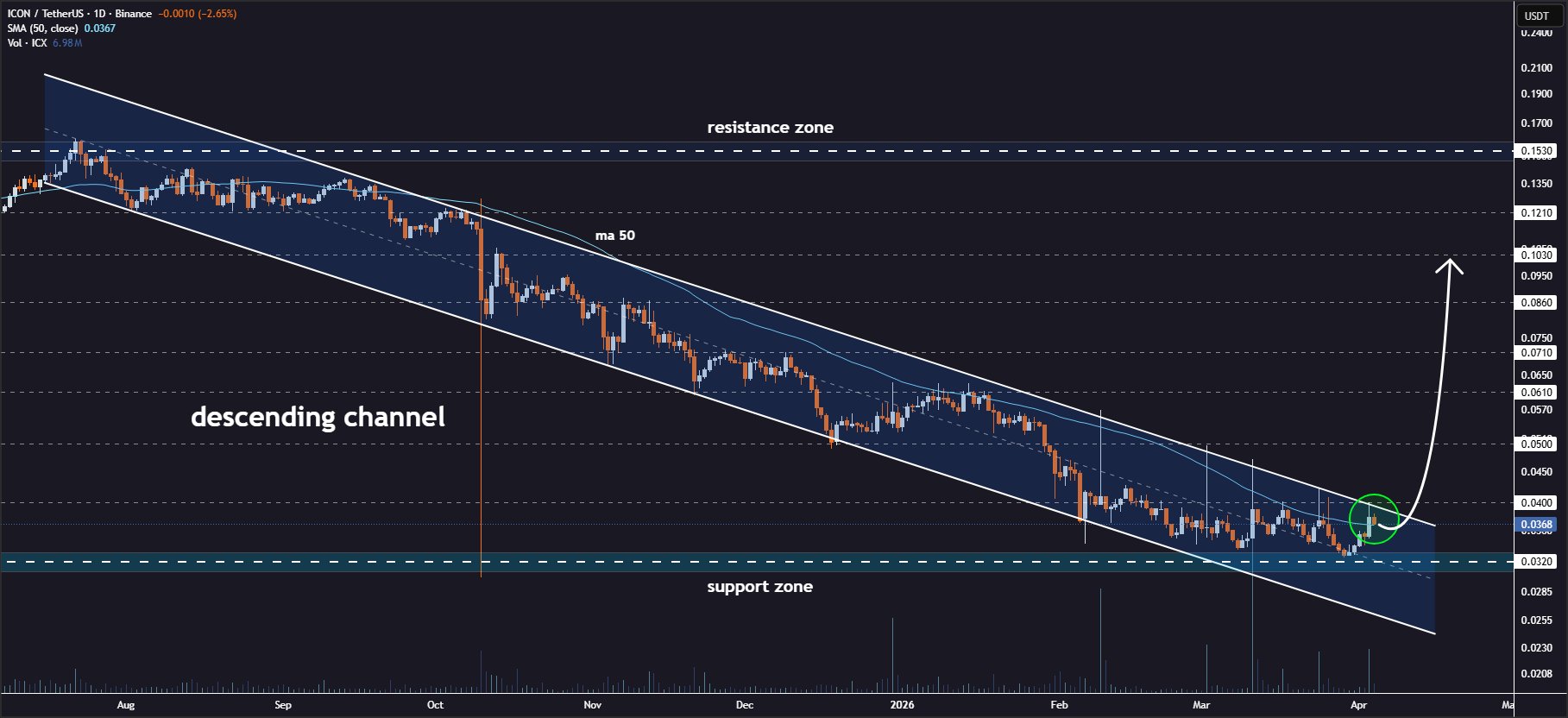ICON is poised to break out of the descending channel on the daily chart👀