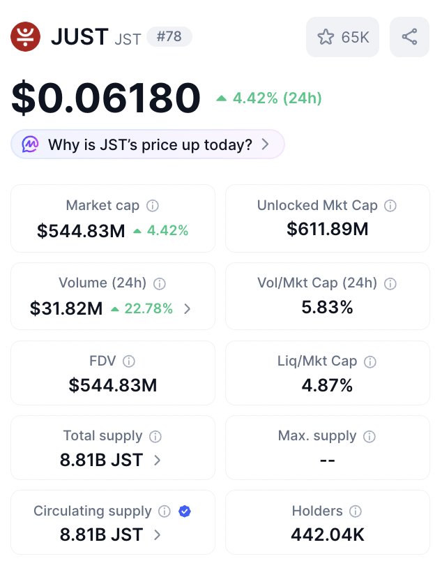 $JST is heating up as on-chain activity continues to surge, signaling renewed market confidence and expanding user participation across the TRON ecosystem. According to @CoinMarketCap, the latest metrics highlight growing momentum behind #JustLendDAO, reinforcing its position as a core pillar of TRON DeFi infrastructure.