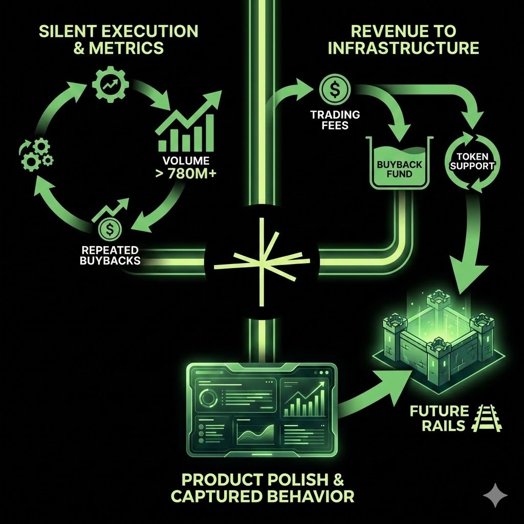 Seeing volume push past 780M with buybacks coming straight from trading fees says a lot about real usage.