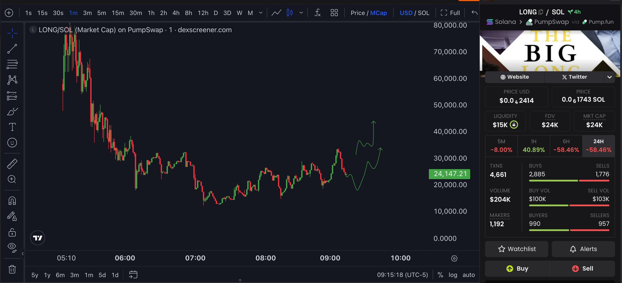 If $SOL finds a bottom this morning, $LONG should do well. Dev has a jup long position open, will take profits and roll into the chart. Simple concept, simple meme, checks the boxes for me. https://t.co/tORz8S3Nng
