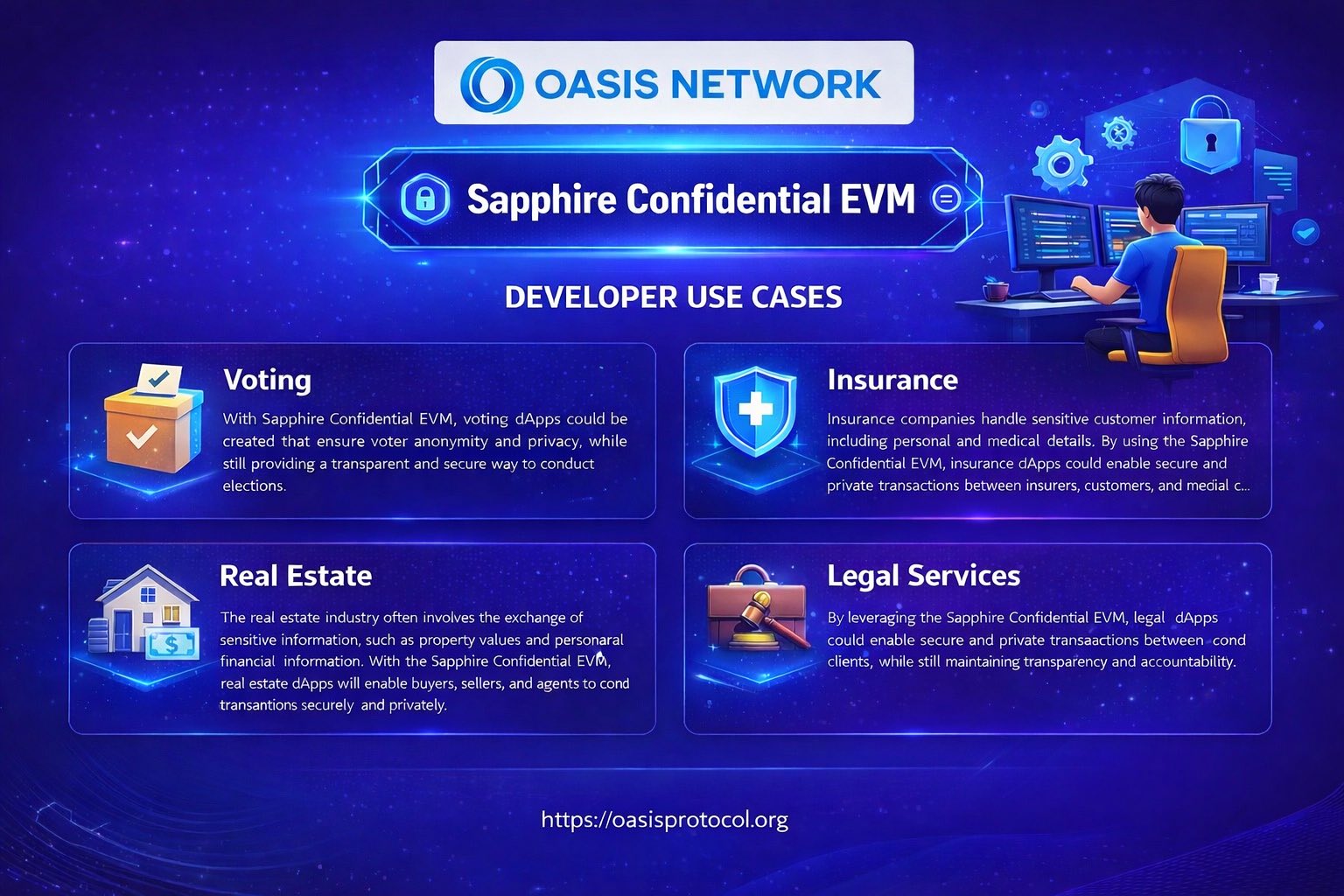The Oasis Protocol Sapphire EVM advances Web3 applications in voting, insurance, and other fields by providing privacy and verifiability.