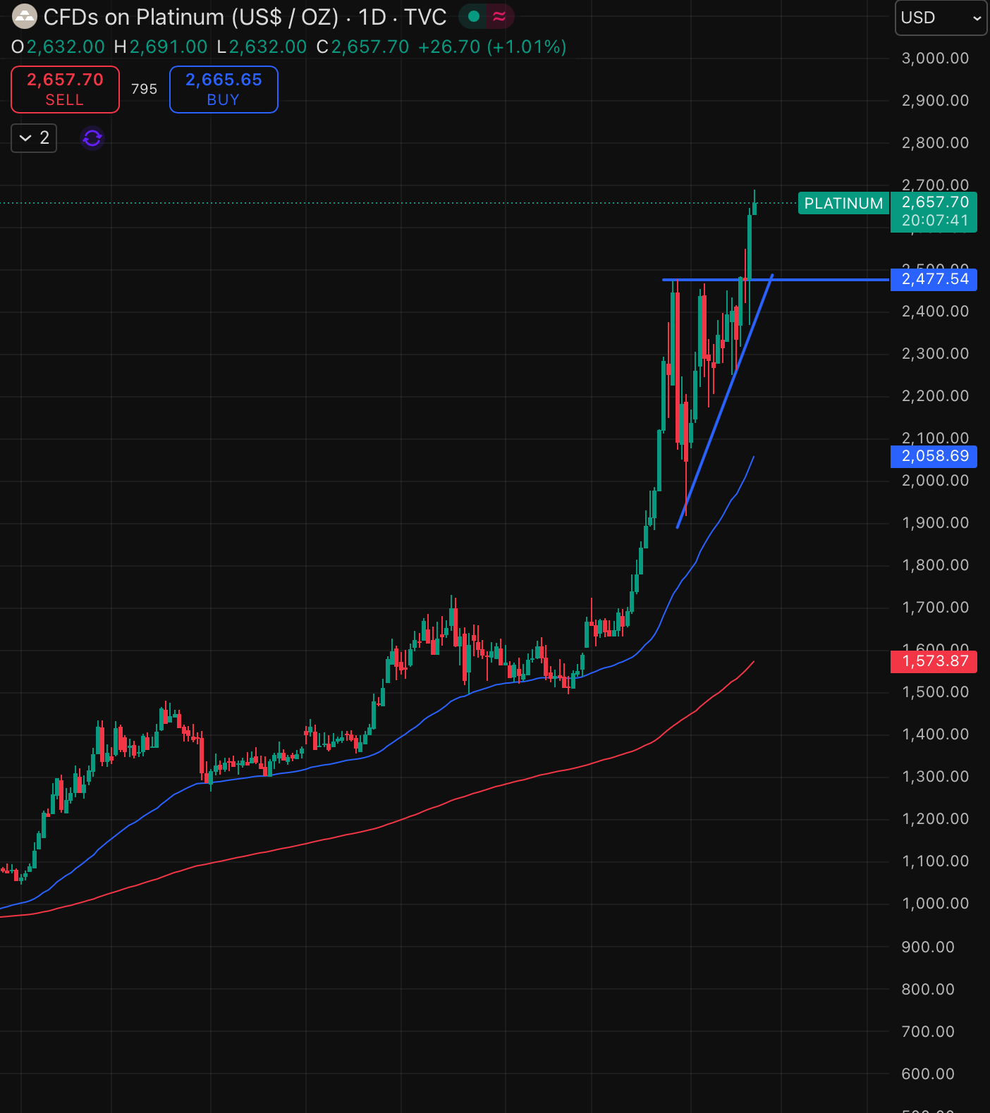 Other precious metals are ripping recent #gold $XAU, and #Silver $XAG. And now maybe it’s platinums big bullish moment.