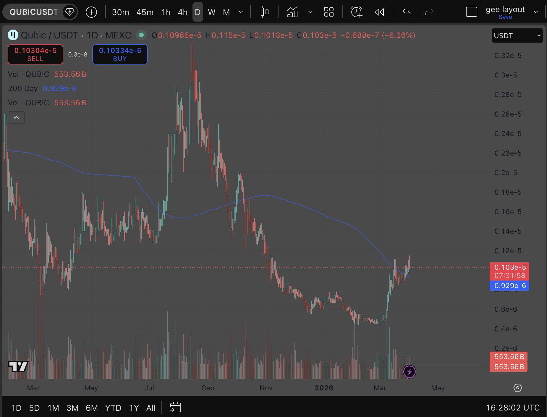 $ 0.00000091 (QUBIC/USD)
