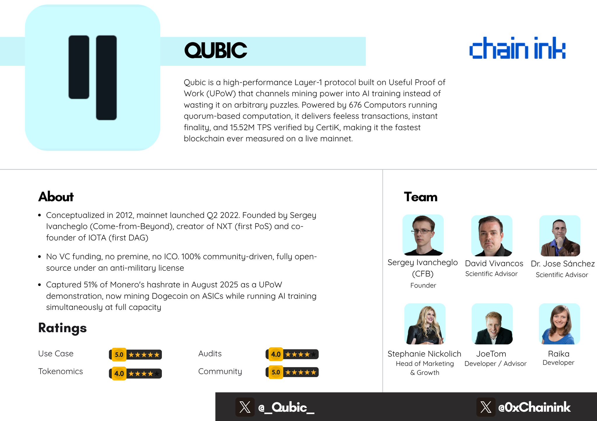 ➛ Community: ★★★★★ (5/5) - This is Qubic's crown jewel. No VC funding, no premine, no ICO, yet the project has built one of the most passionate, deeply engaged communities in all of crypto.