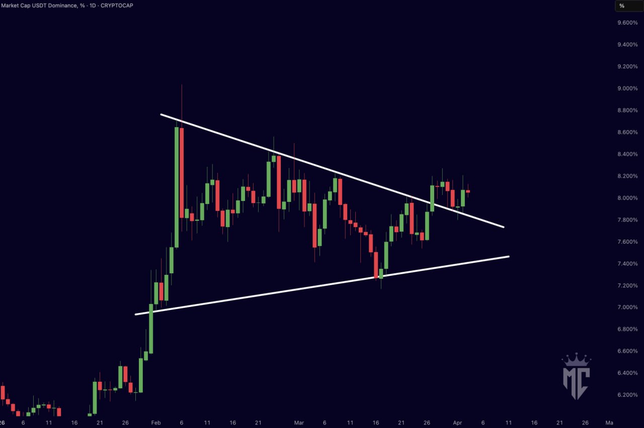 $USDT.D has broken out and retested this bull flag.