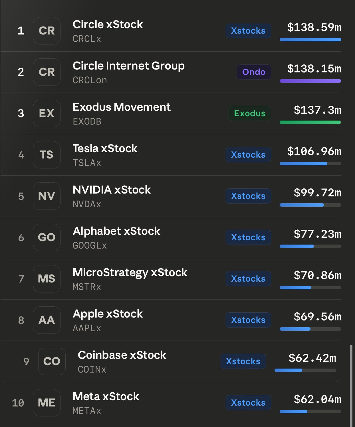 Top 10 tokenized stocks right now: