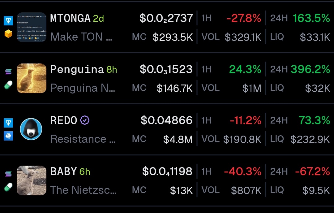 Two TON ecosystem memes have appeared on the trending top of Geckoterminal.