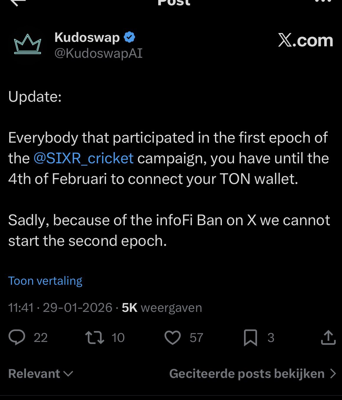 Leafswan FA_Analyst Influencer C70.32K @leaf_swanThis is almost a month later… @SIXR_cricket rewards from kaito and @KudoswapAI are still silent? Or anyone got news about this? https://t.co/dcM8YdczDj