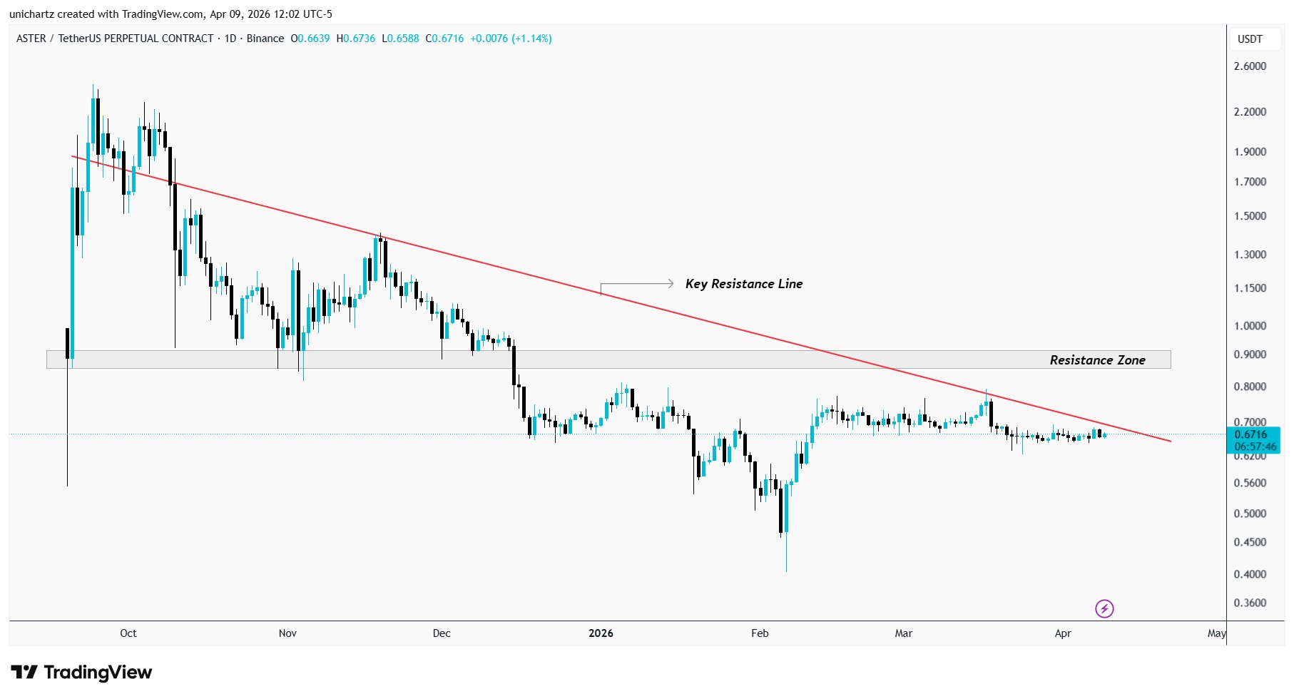ASTER remains in a downtrend, facing key resistance, recommendation to stay on the sidelines.