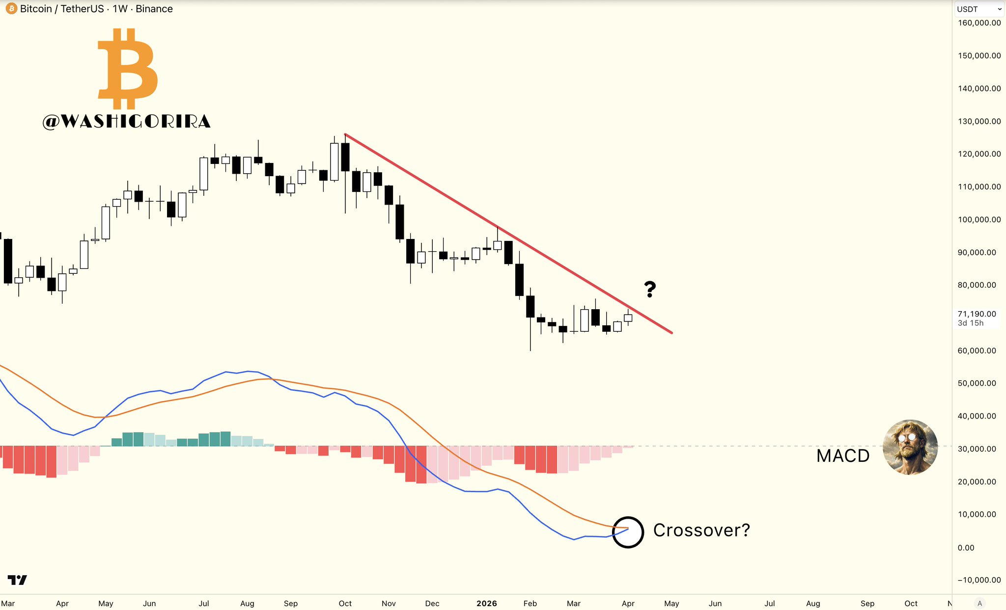 BTC weekly MACD is about to form a golden cross, facing a market structure breakout, but beware of false breakout risk.