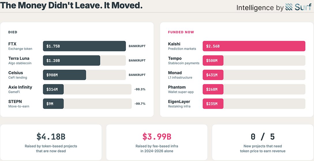Crypto market funds have not left; they have shifted from failed token projects to new infrastructure.