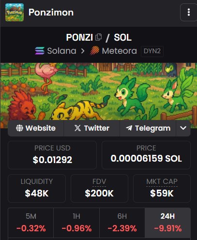 Ponzimon was considered ahead of its time, but it missed the timing. As a low-liquidity, low-market-cap token on the Solana chain, its short-term performance continues to decline.