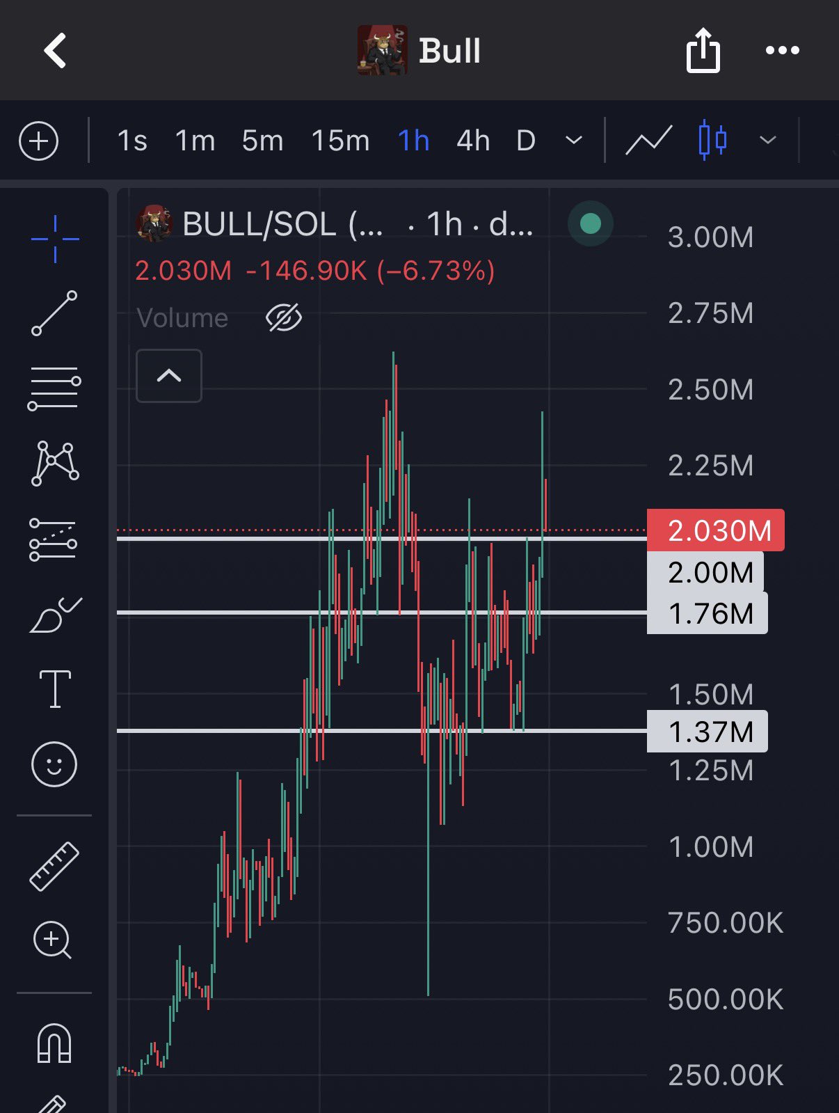 The author is extremely bullish on the BULL token, believing it will continue to rise with a 20x potential, and the chart shows a recent sharp surge.